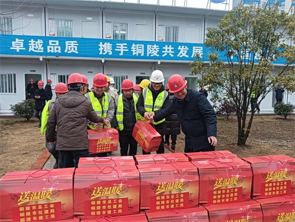 2024年2月1日上午,市住建局副局長(zhǎng)、工會(huì)主席楊平、市建工局局長(zhǎng)何俊林、副局長(zhǎng)湯春華代表市總工會(huì)、住建局和建工局到公司建筑工地慰問節(jié)前堅(jiān)守崗位的施工人員,并向奮戰(zhàn)在工地一線的工人發(fā)放了慰問品。公司董事長(zhǎng)牛和鋒、總工繆紅兵、副總李齊龍、工會(huì)主席許萍等參加慰問活動(dòng)。